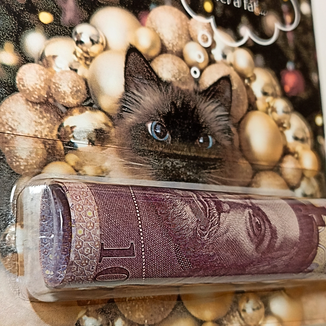 Cicás Karácsonyi pénzátadó, pénz ajándékozása, karácsonyi ajándékkísérő, karácsonyfadísz boríték helyett.